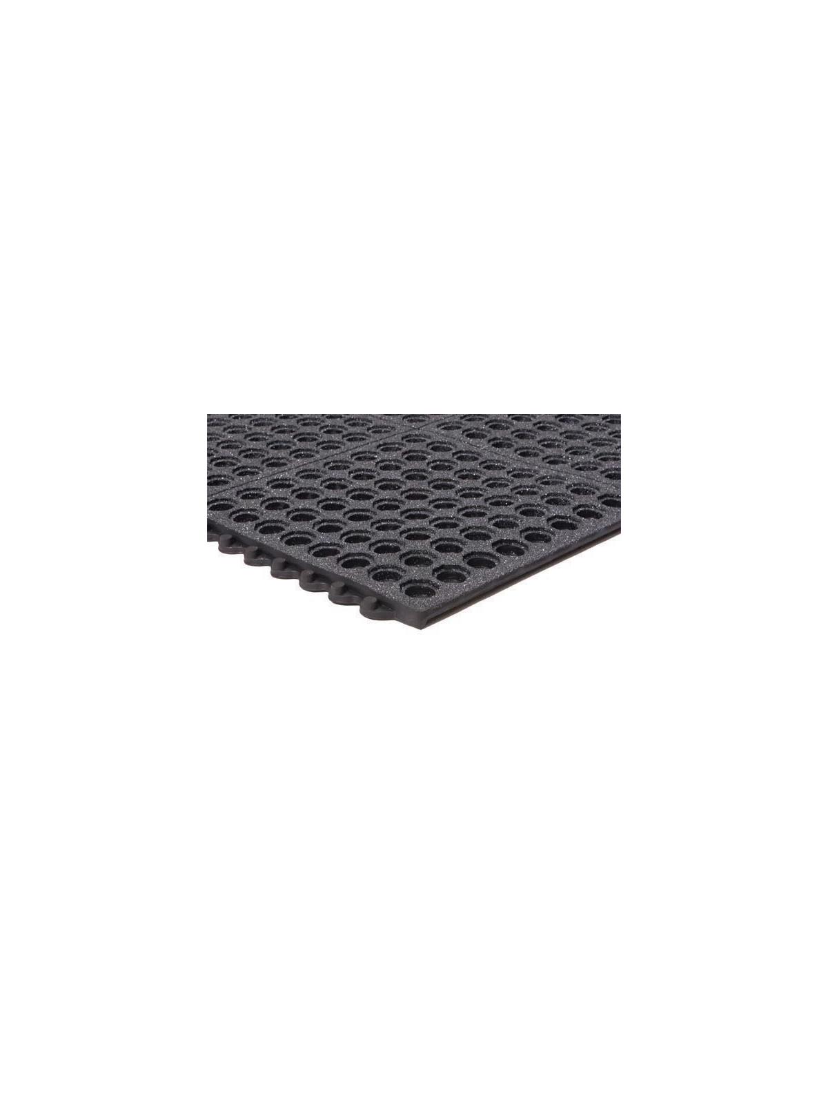 This interlocking drainage mat contains the highest level of grease and petroleum resistance and is made of 100% nitrile. It's ideal for demanding industrial and kitchen environments exposed to oil and grease spills. Modular 3 x 3' mats are lightweight and easy to handle for easy clean-up. Will not deteriorate from the effect of petroleum, oils and fats. Nib backing elevates mat above the surface for improved drainage and large holes allows debris to fall through. Choose the gritted surface for extra traction. FOB Shipping Point.
