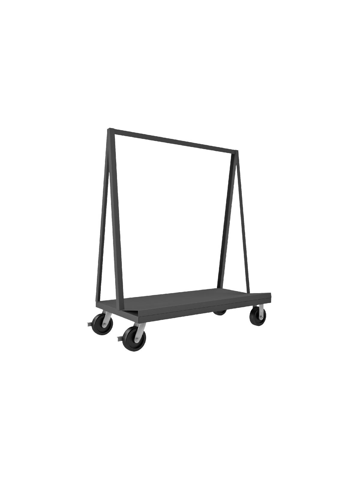 1-1/2" angle iron frame. 12 gauge, steel deck with reinforced channels underneath. 1-1/2" lip on deck prevents parts from falling off during transport. 6 x 2" phenolic casters; (4) swivel. Ships fully assembled. Durable, gray, textured powder coat finish. FOB Shipping Point.