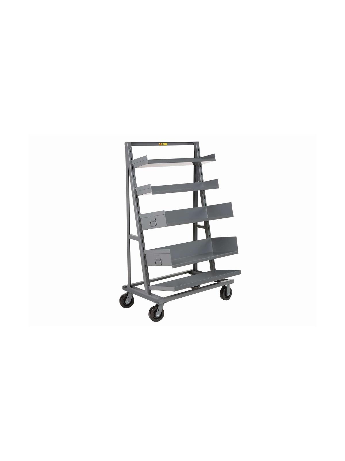 Slotted uprights accept your choice of optional hook-on trays, shelves, or pegboard panels. Rolls smoothly on 6 x 2" phenolic casters, 2 swivel and 2 rigid. Available single or double sided. Optional accessories include Trays, Shelves, and Pegboard Panels. Order truck and accessories separately. FOB Shipping Point.
