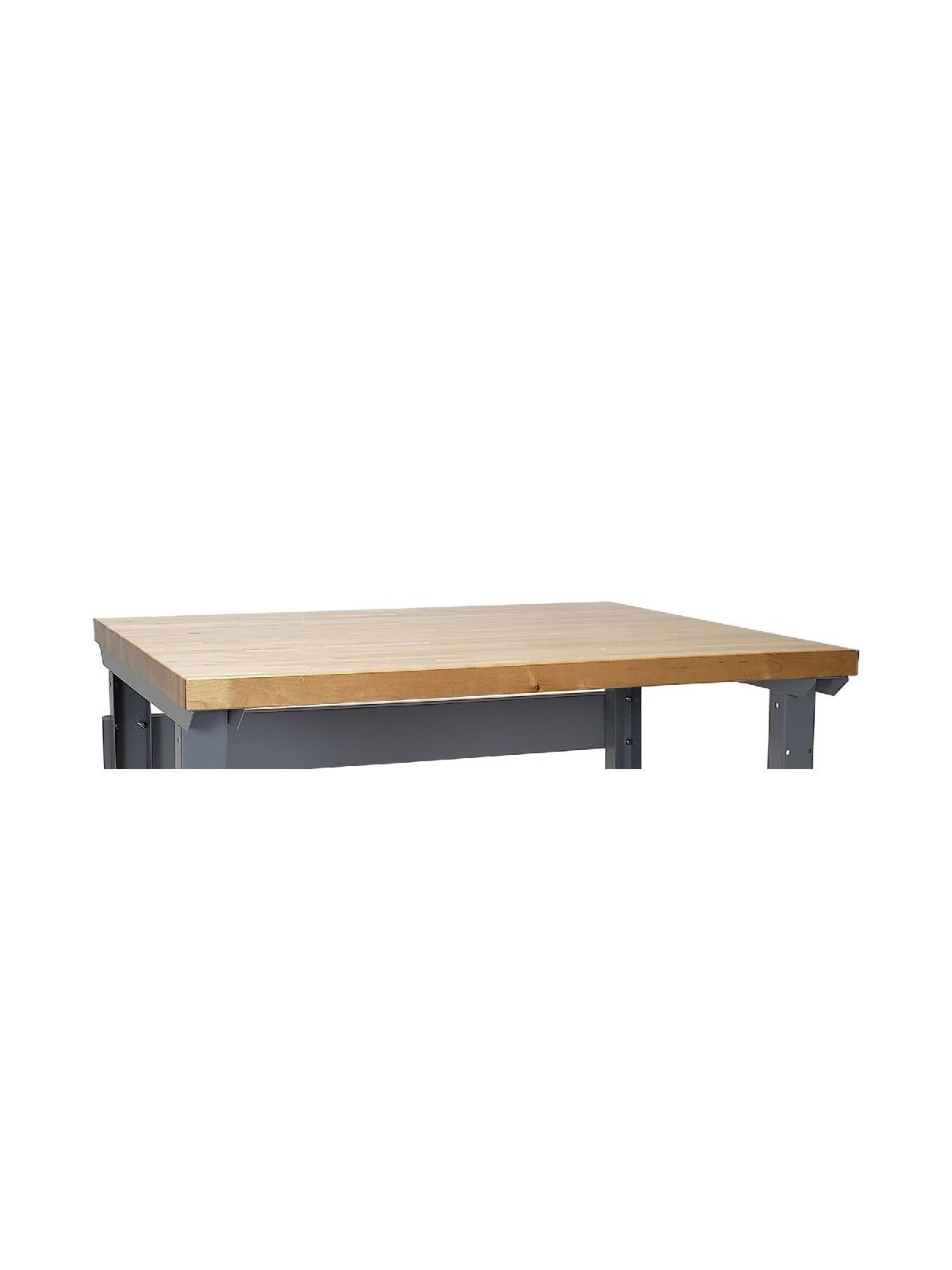 Hardwood Bench Tops includes 1-3/4"H. Maple Wood Top with legs adjustable by 1" increments up to an additional 12" in height. Frame made with 14 gauge steel. Includes pair of adjustable legs, Stringer and Maple Wood Top. Holds up to 5,000 lbs. Frame painted in Dove Gray powder coat paint. Assembly required.