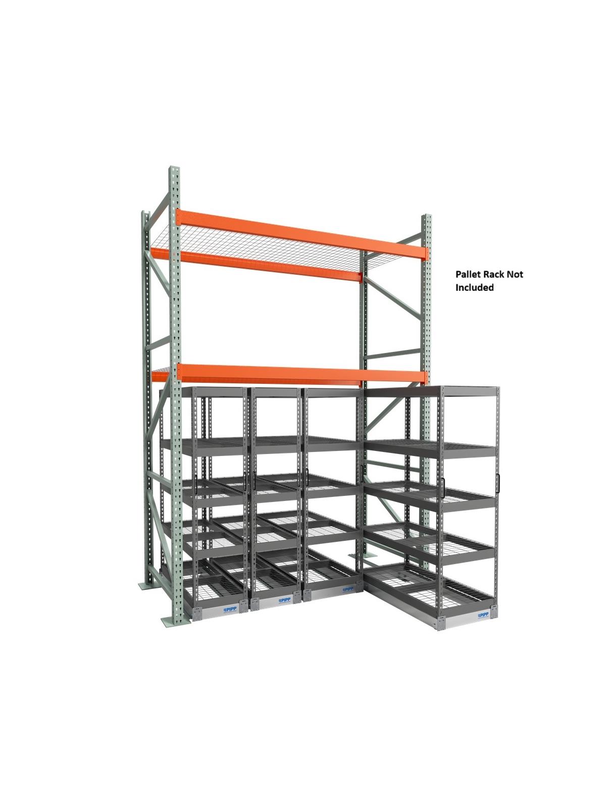 Aisle-Free Mobile Storage Systems install seamlessly beneath your existing heavy-duty racking. The under-rack shelving is easily pulled out for inventory retrieval and effortlessly pushed back into place, offering a seamless and efficient storage experience. By reclaiming the underutilized space beneath static racks, this solution optimizes your cubic footprint for storage, making it easier to organize and access smaller goods that can be difficult to manage. This solution features floor-mounted tracks discreetly installed beneath the existing racking system, ensuring they remain hidden and never obstruct the aisle. A durable urethane front wheel glides smoothly along the flooring while the concealed track acts as a guide, maintaining precise alignment and stability. FOB Shipping Point.