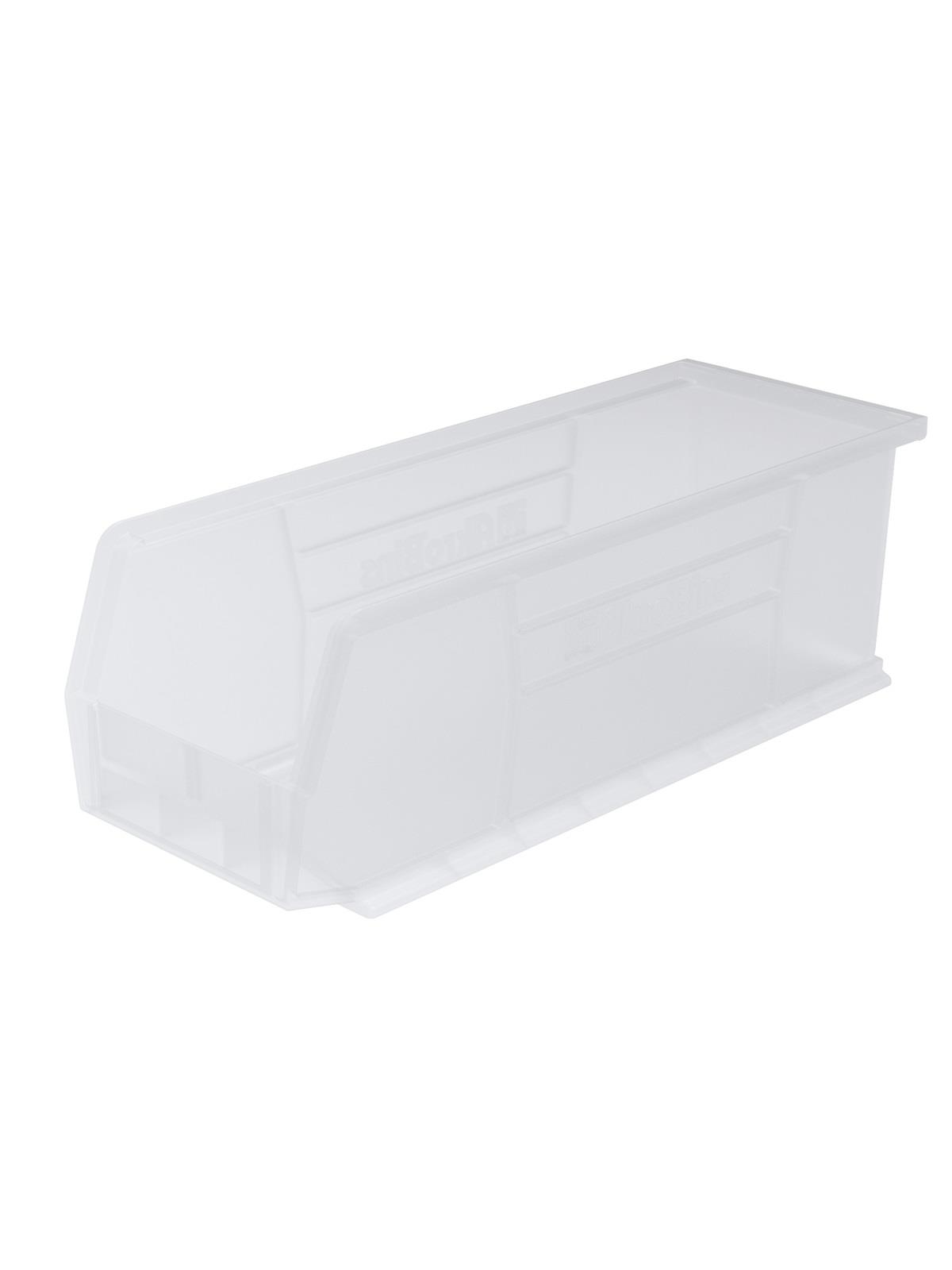 AkroBins are heavy-duty and securely stack on top of each other, sit on shelving, and hang from Akro-Mils racks, panels, rails and carts. Unaffected by weak acids and alkalis the sturdy one piece construction is water, rust and corrosion-proof. Finger grip allows for easy handling. Large label slot for easy identification of contents. Autoclavable up to 250° F. Guaranteed not to crack or break under normal load conditions as stated in the 1-year limited warranty. Optional dividers and labels available, see Related Items tab. AkroBins available in Red, Yellow, Blue, Green, Black, Stone, and Semi-Clear. FOB Shipping Point.