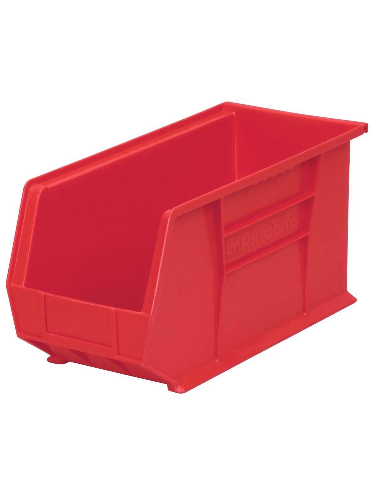 AkroBins are heavy-duty and securely stack on top of each other, sit on shelving, and hang from Akro-Mils racks, panels, rails and carts. Unaffected by weak acids and alkalis the sturdy one piece construction is water, rust and corrosion-proof. Finger grip allows for easy handling. Large label slot for easy identification of contents. Autoclavable up to 250° F. Guaranteed not to crack or break under normal load conditions as stated in the 1-year limited warranty. Optional dividers and labels available, see Related Items tab. AkroBins available in Red, Yellow, Blue, Green, Black, Stone, and Semi-Clear. FOB Shipping Point.