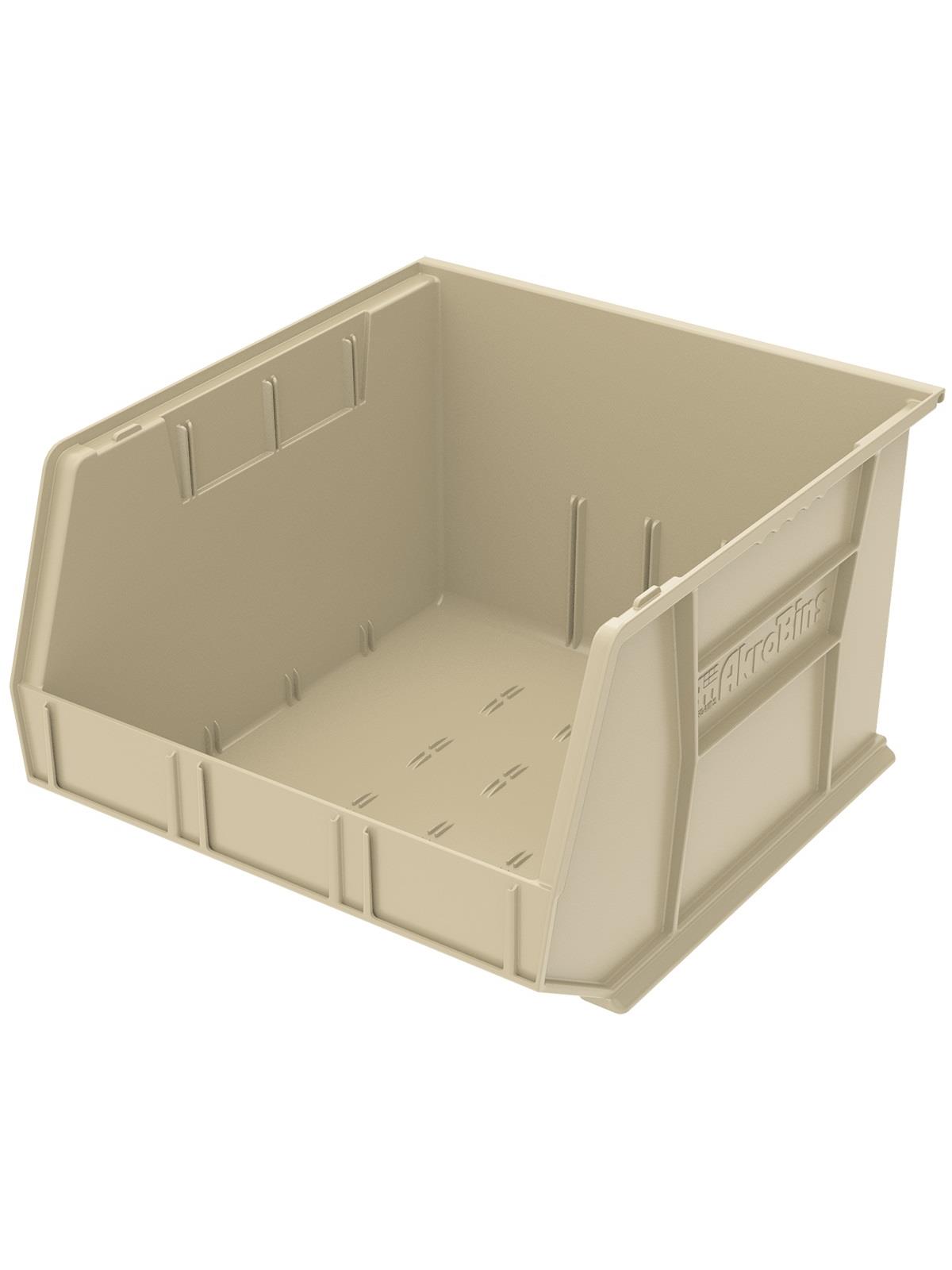 AkroBins are heavy-duty and securely stack on top of each other, sit on shelving, and hang from Akro-Mils racks, panels, rails and carts. Unaffected by weak acids and alkalis the sturdy one piece construction is water, rust and corrosion-proof. Finger grip allows for easy handling. Large label slot for easy identification of contents. Autoclavable up to 250° F. Guaranteed not to crack or break under normal load conditions as stated in the 1-year limited warranty. Optional dividers and labels available, see Related Items tab. AkroBins available in Red, Yellow, Blue, Green, Black, Stone, and Semi-Clear. FOB Shipping Point.