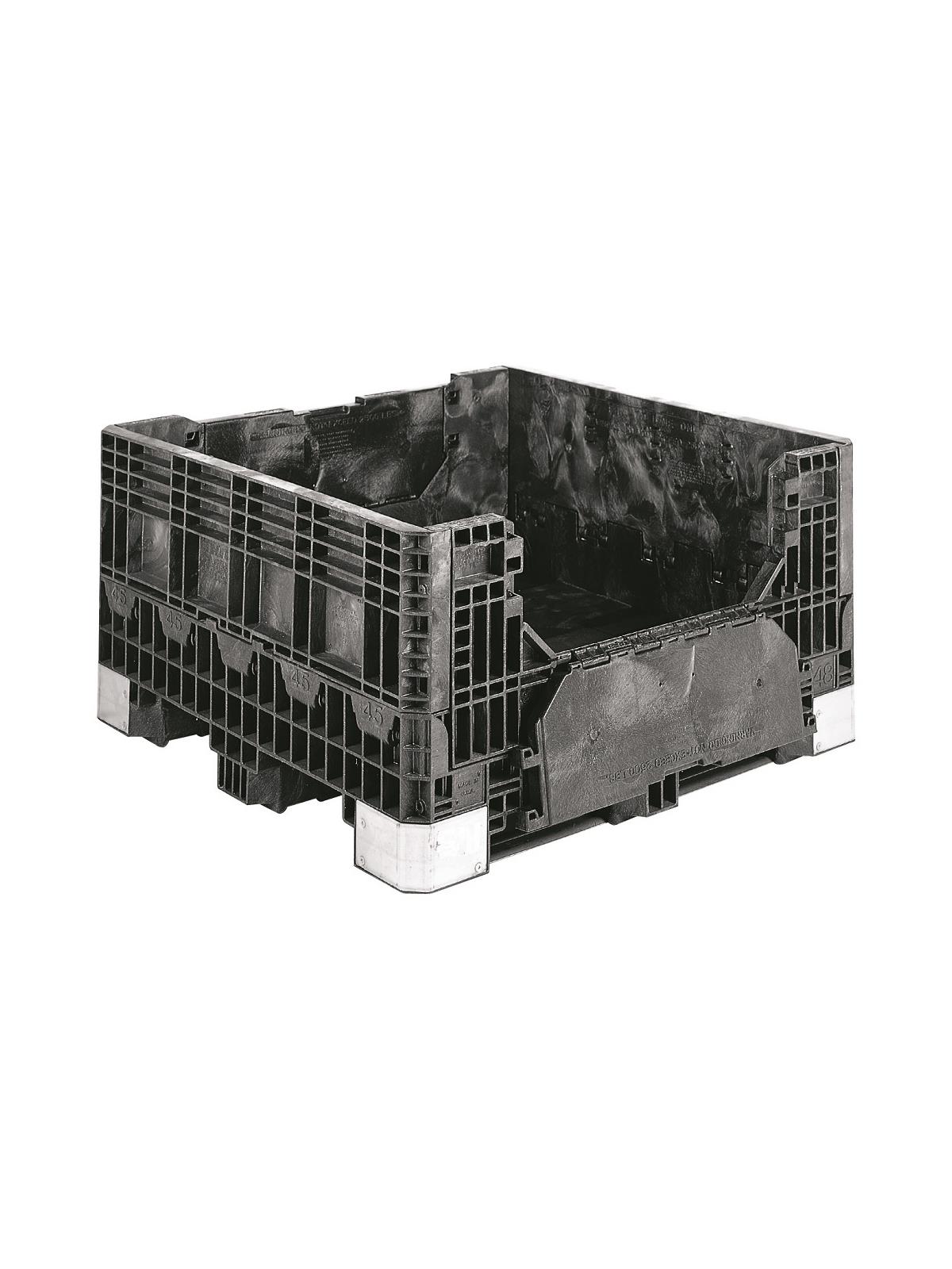 Bulk boxes are great for automotive and industrial manufacturing uses. Durable HDPE construction with thicker sidewalls and high strength bases. Boxes stack securely. Four-way forklift entry. Two doors on length standard. Black in color. FOB Shipping Point.