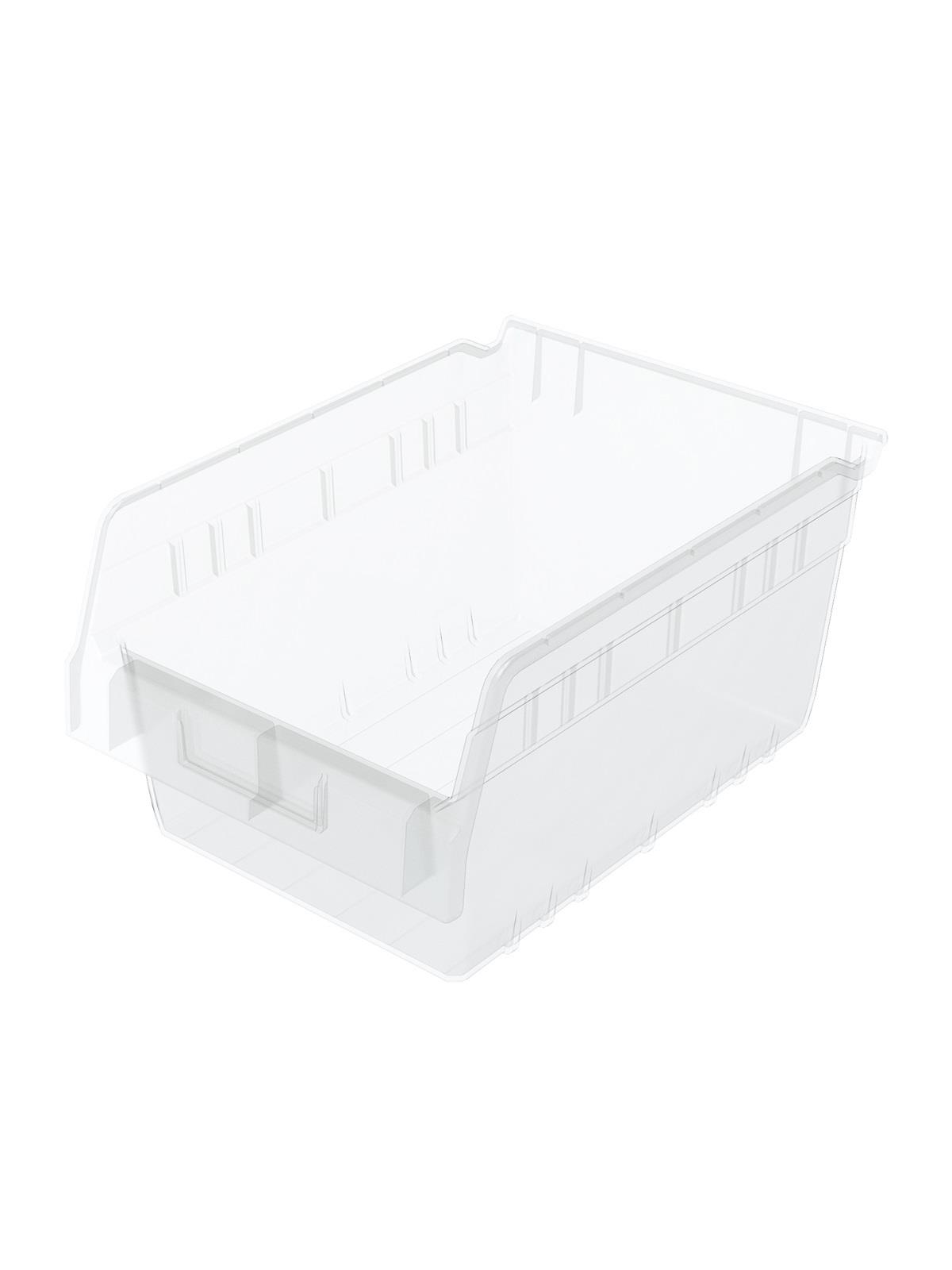 Clear 6" ShelfMax® Bins expand storage capacity up to 85% over standard 4" bins. Rolled top edge for added strength when filled to capacity. Durable clear polypropylene construction. Optional lids and dividers available. FOB Shipping Point.