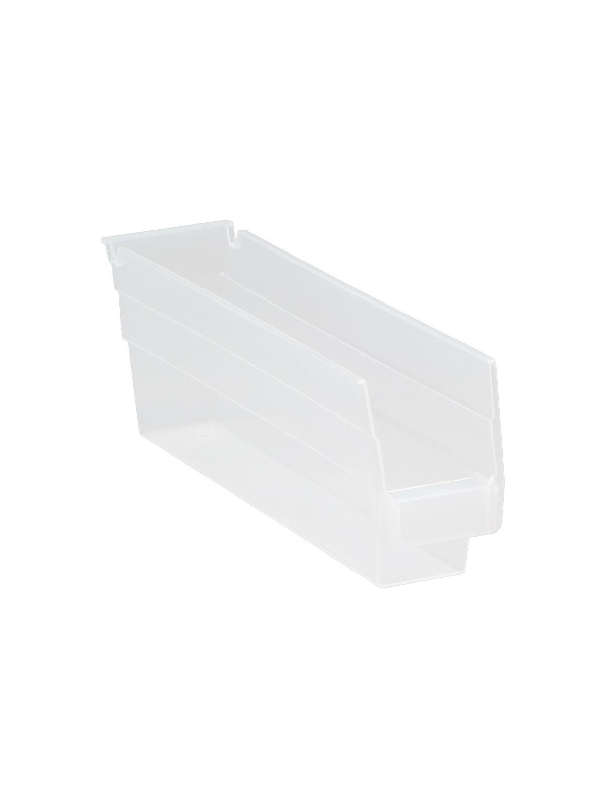 Tough, durable, high density shelf bins are the industry standard for quality. These tri-clear polypropylene bins feature a molded-in label holder, built-in rear hanglock which allows bins to tilt out for complete access when on shelving. A wide hopper front allows complete access to the contents of the bin. Edges are reinforced for added strength. They are designed for 12", 18" and 24" deep shelf units, racks or standard shelving. FOB Shipping Point.