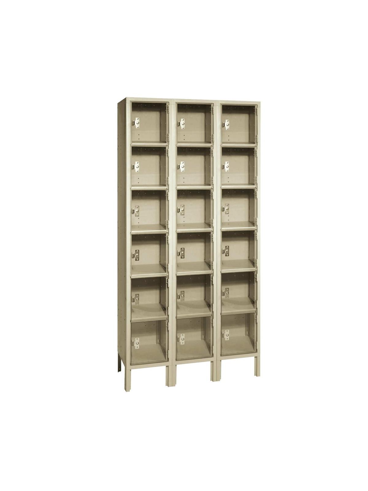 ClearSight™ Lockers are engineered with high strength injection molded polycarbonate doors. Doors are 12"W x 12"H and feature a steel pull handle with built-in padlock attachment. 16-gauge locker frame provides extra strength and durability. Factory assembled lockers feature pop rivet construction. FOB Shipping Point.