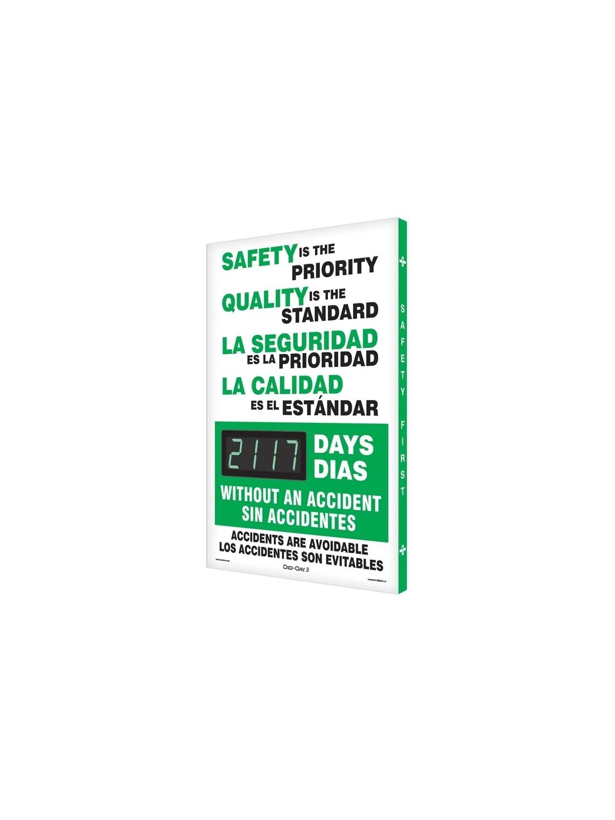 Electronic LED display advances automatically each day, eliminates the hassle of manually updating the safe day numbers. Safety Scoreboard with bright, digital display provides an eye-catching way to inform and alert employees, contractors, and visitors on tracking of safe work days in the workplace, as it counts up. FOB Shipping Point.
