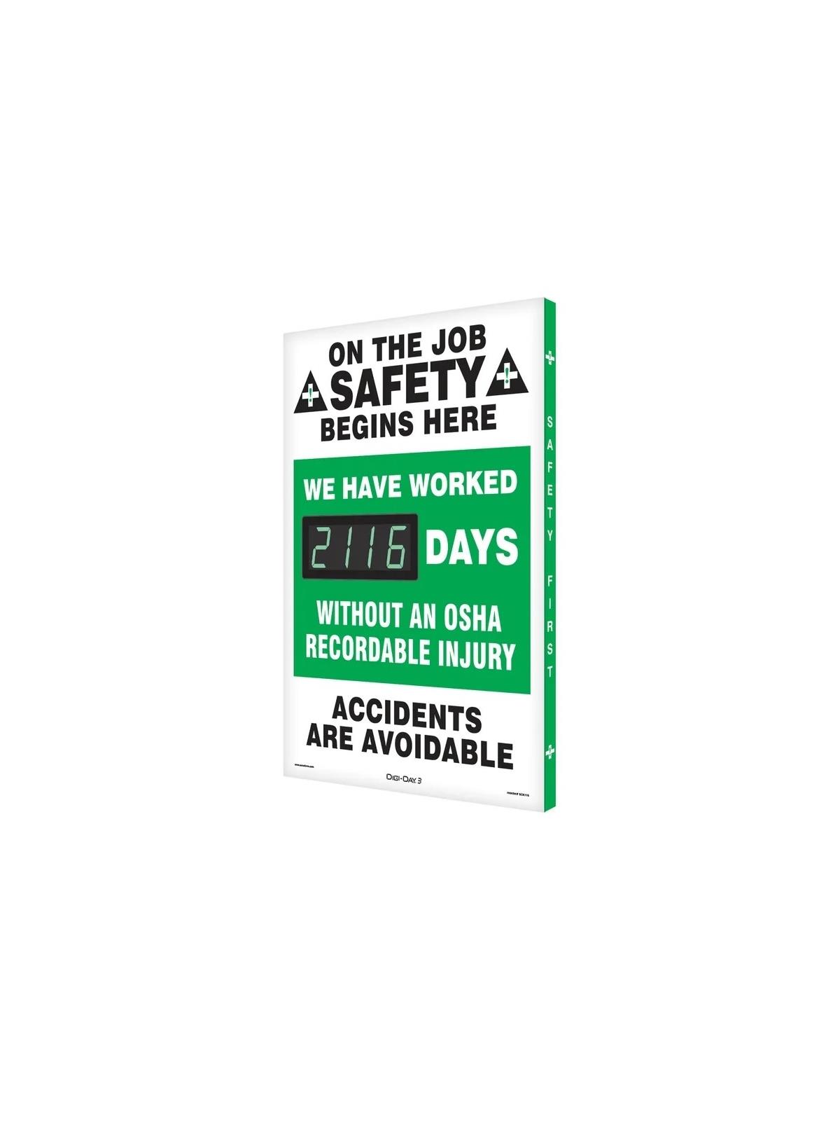 • Count days without an accident in green, or in the event of an accident, set the display to red until you meet your new safe days goal.