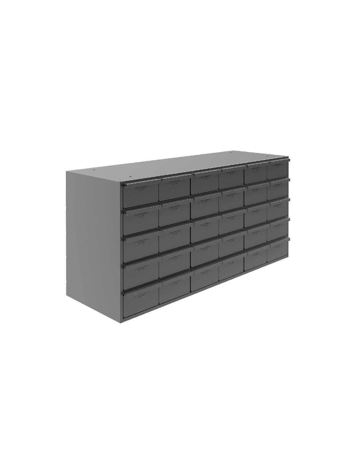 All-welded heavy-duty frame features vertical support for extra stacking strength. A positive stop mechanism prevents drawers from falling out. Drawers also feature double interlocked design for additional rigidity. Full-width handles for a firm grip. Each drawer complete with 2 adjustable dividers. Extra dividers sold below. Fits standard shelving. Finished in rust and acid resistant Gray powder coat. Fully assembled. FOB Shipping Point.