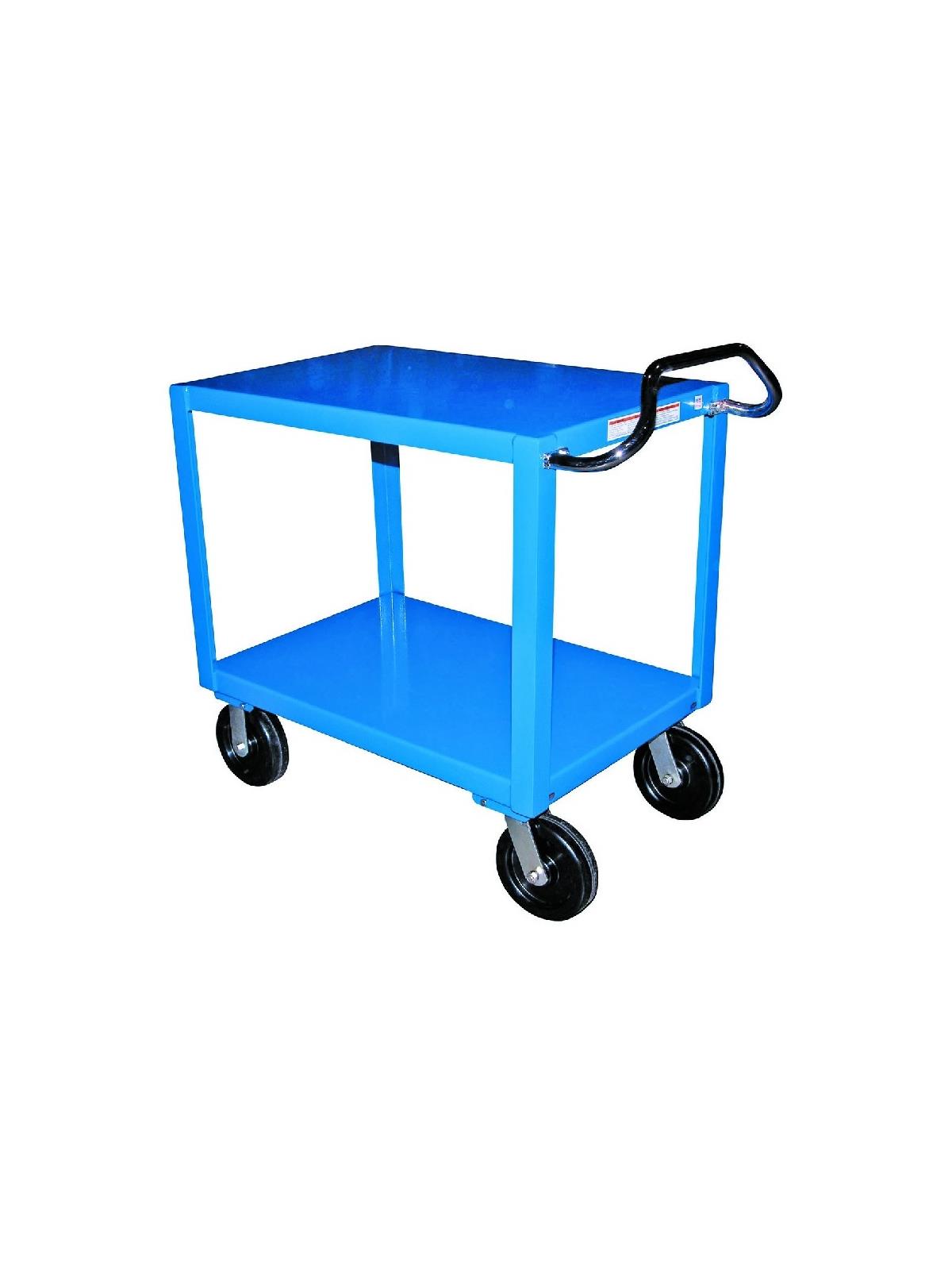 Constructed of heavy-duty steel to handle uniform loads up to 4,000 pounds. The patented ergonomic handle decreases fatigue by allowing the operator to easily maneuver the cart. Handle can be inverted for individual height comfort. Rolls on 8" x 2" casters, two (2) rigid and two (2) swivel with roller bearings. Many caster styles to choose from. Additional sizes available.  FOB Shipping Point.