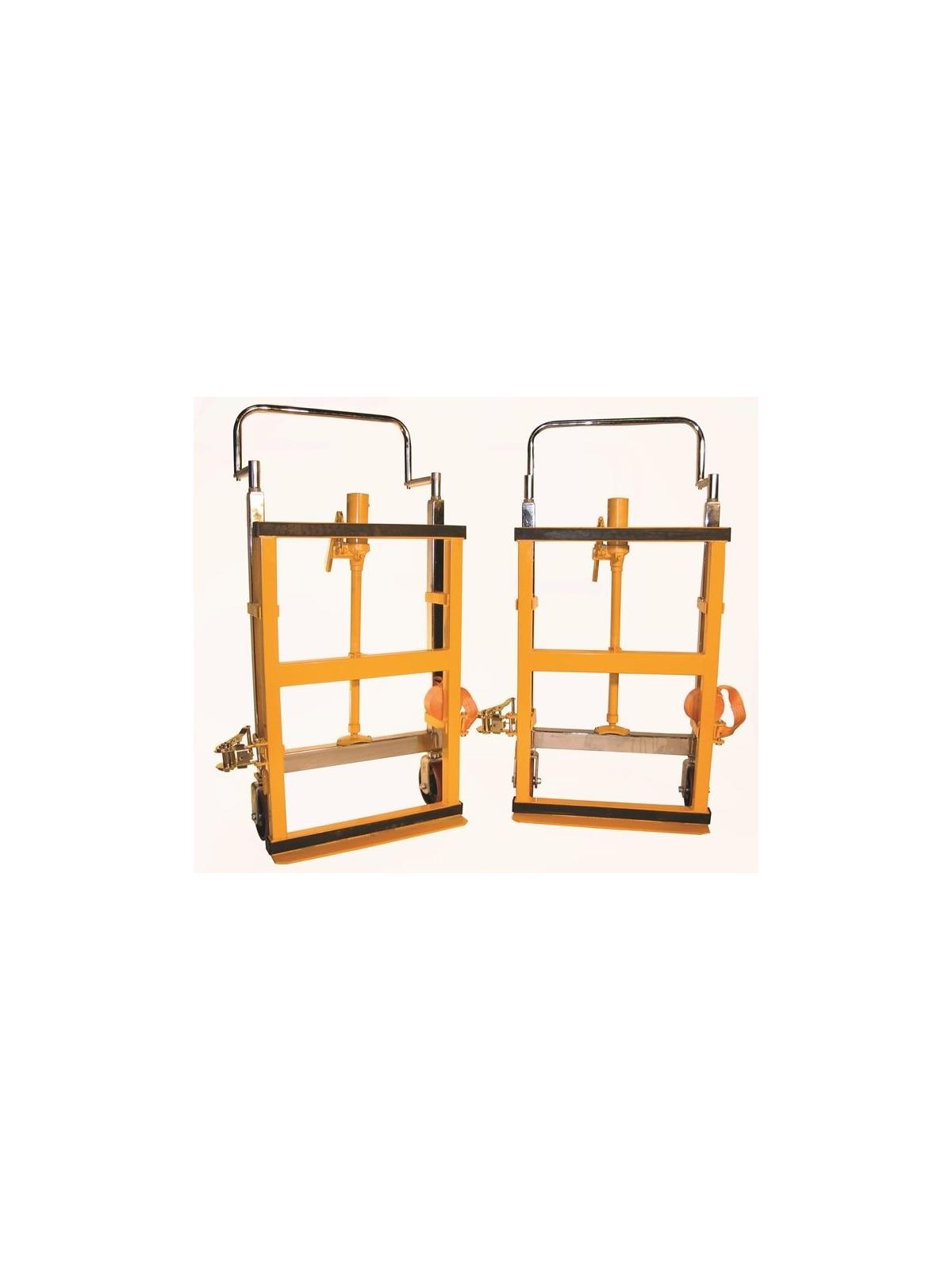 Available in manual or hydraulic models. Small footprint allows for easy storage and mobility. Included straps secure loads tightly. Sold in pairs. FOB Shipping Point.