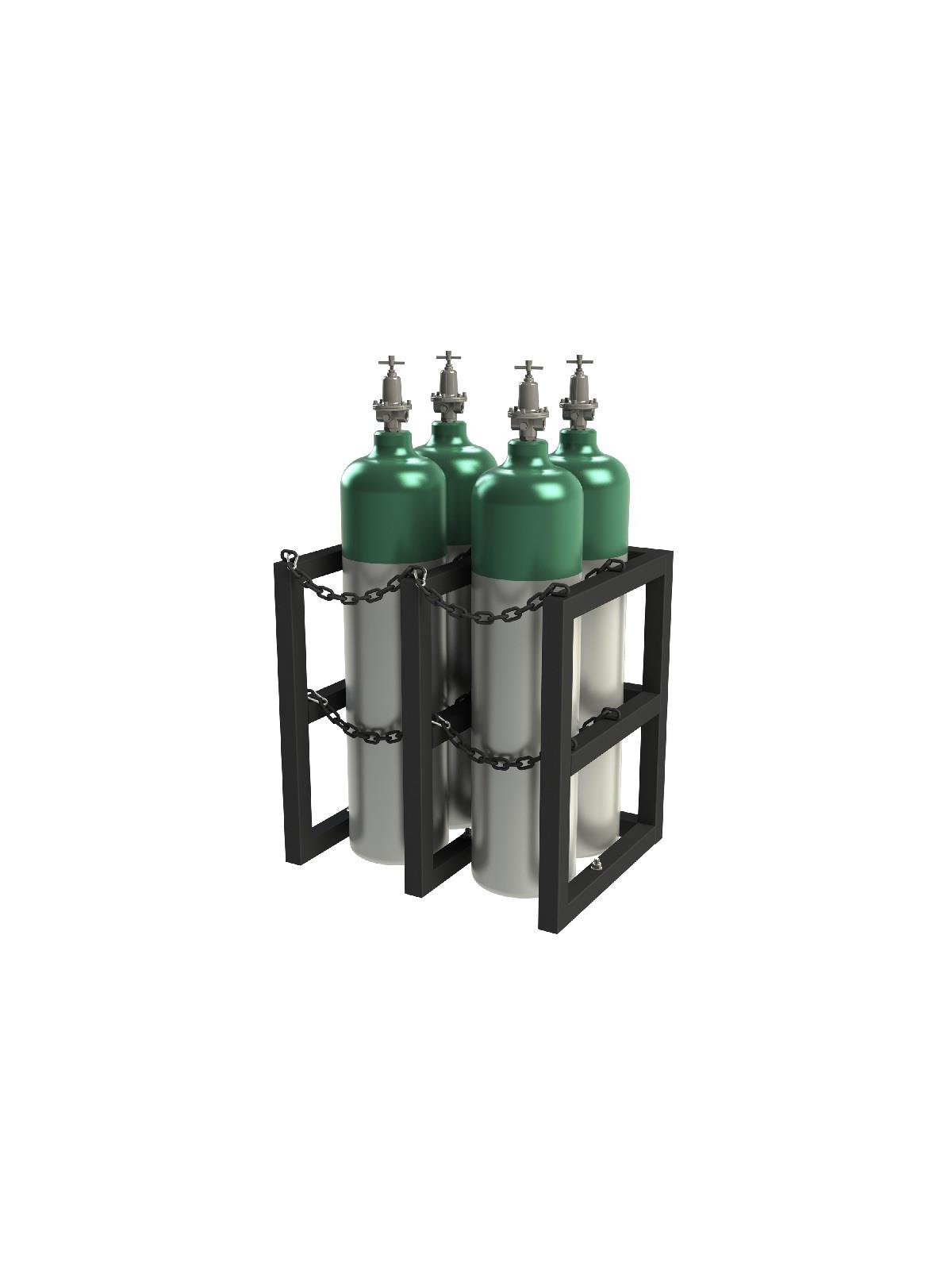 3 gauge, steel tube material can be secured to the floor with included concrete anchors. Includes chains to secure and align the gas cylinders. Organize types in their own rows. Built to meet and exceed quality and safety standards of OSHA, OSHPD, UFC, NFPA and CGA. Ships fully assembled, ready for immediate use. Black, textured, powder coat finish, good for outdoor or indoor use. FOB Shipping Point.