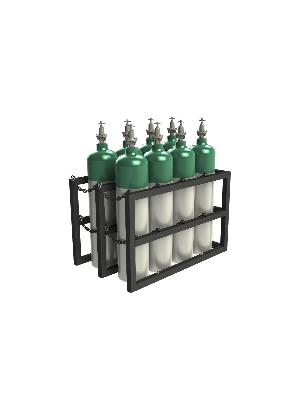 3 gauge, steel tube material can be secured to the floor with included concrete anchors. Includes chains to secure and align the gas cylinders. Organize types in their own rows. Built to meet and exceed quality and safety standards of OSHA, OSHPD, UFC, NFPA and CGA. Ships fully assembled, ready for immediate use. Black, textured, powder coat finish, good for outdoor or indoor use. FOB Shipping Point.