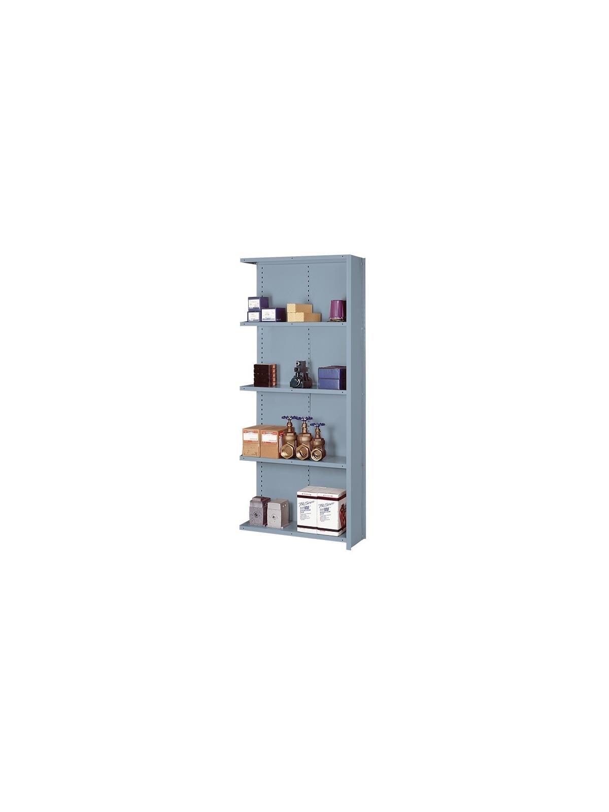 Pre-engineered sections 36"W. x 84"H. and features lapped and welded shelf corners for additional strength and durability. Upright posts are roll formed "T" members that allow shelves to adjust on 1-1/2" centers. Order one starter unit and the balance as adders to make up a row of shelving. Five shelf unit (four openings). FOB Shipping Point.