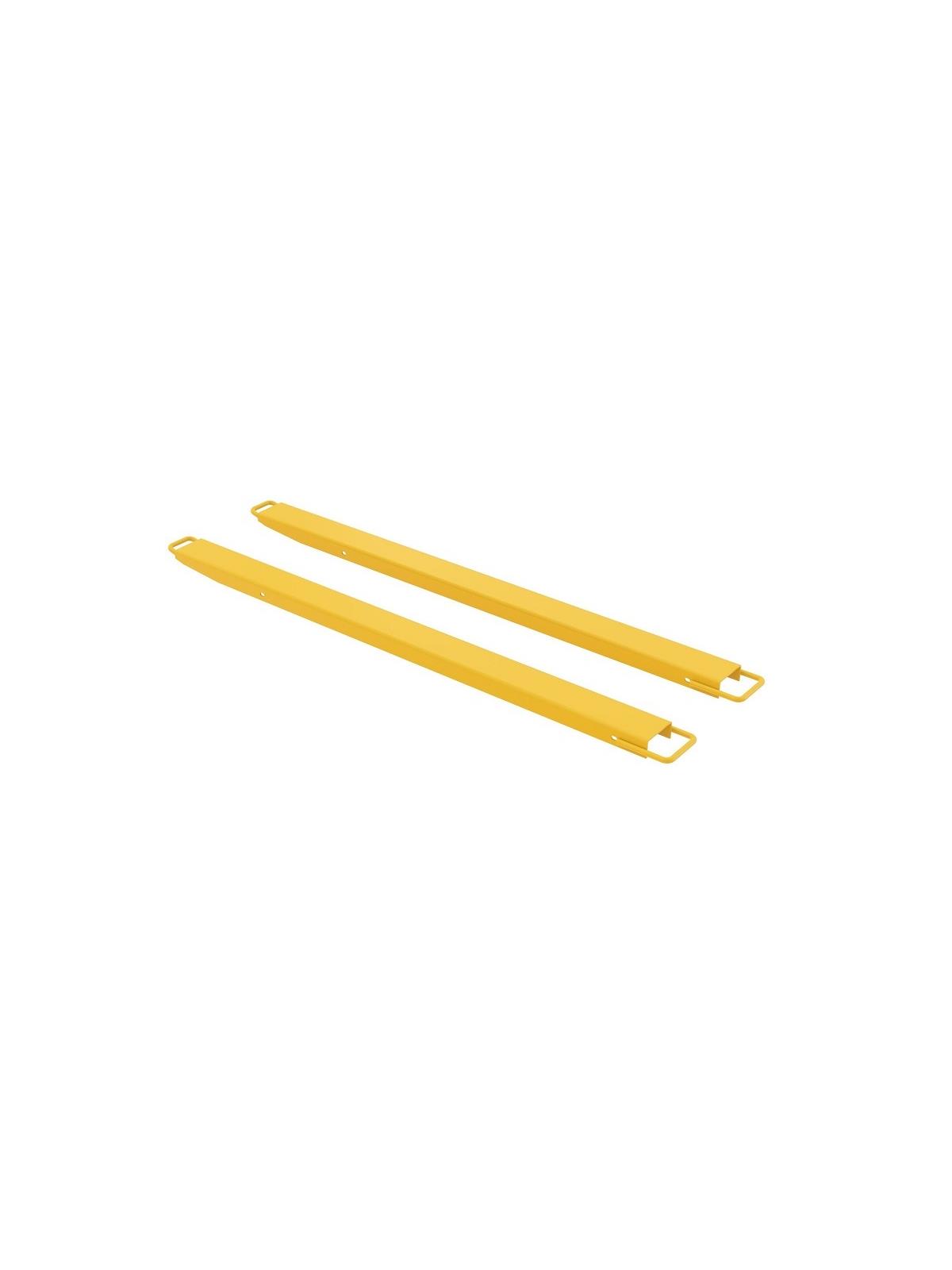 High Strength Fork Extensions are the perfect accessory for new or existing forks. The high strength material provides extra support needed to lift large heavy objects with a fork lift. A 3/16" thickness and included lifting handle for simple placement of the extension onto the lifting fork. These models are almost 40% lighter than standard fork extensions. 4,000 pound capacity is evenly distributed per pair. A powder coat finish is included to diminish scrapes and minimize abrasion during use. Baked-in powder coat finish for added toughness. FOB Shipping Point.