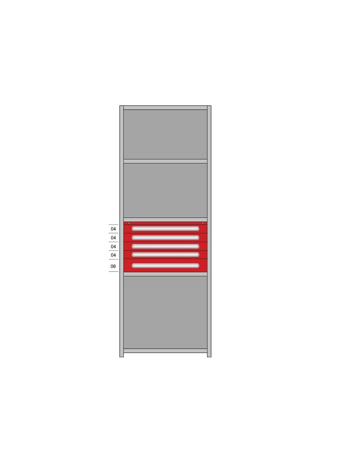 Modular Drawers in Shelving allows you to combine the storage of bulky items on shelves and small parts, tools, and supplies in drawers.