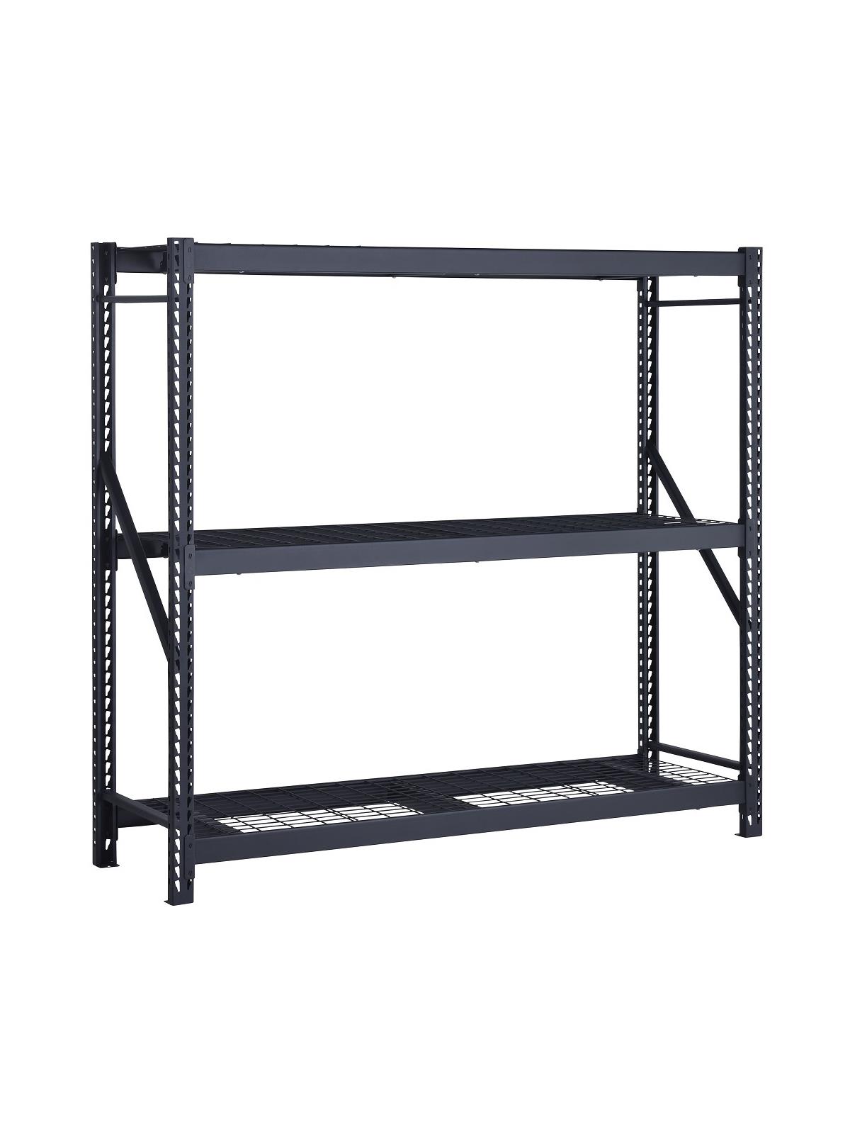 Muscle Rack bridges the gap between pallet rack and conventional industrial shelving. Heavy-duty 16-gauge all welded upright frame punched on 3" centers for maximum beam adjustability. Each shelf features 16-gauge step beams plus tie bars to prevent beam rotation. Wire decking provides strength and visibility. FOB Shipping Point.
