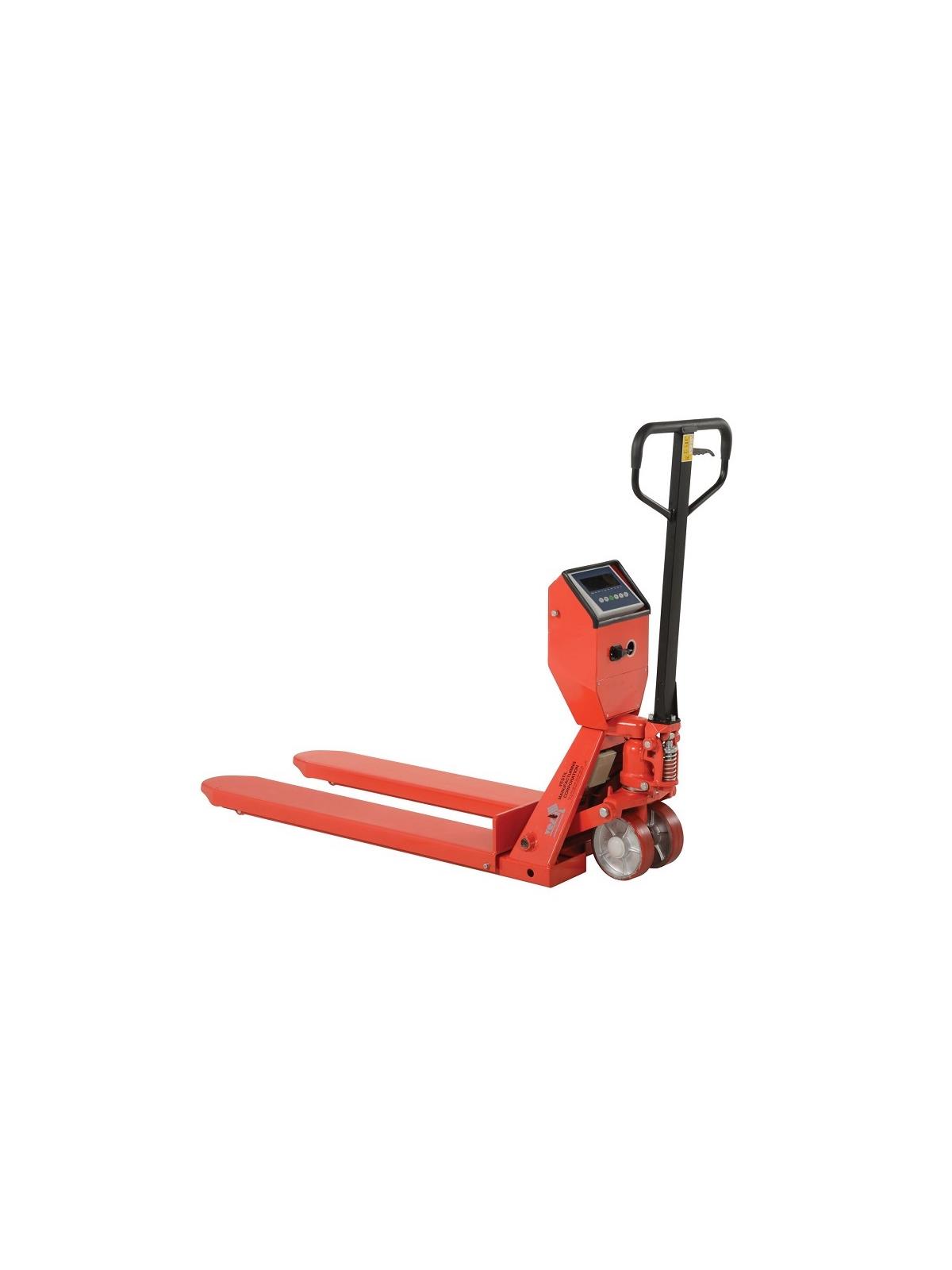 User friendly and suitable for low height lifting. Built-in scale allows weighing of loads while it is being handled. Scale is selectable in a variety of increments to adjust to the size of your load. Keyboard calibration and functional setup with automatic zero capabilities. Digital filtering is used to help compensate for vibration and motion for smoothness and accuracy. Each fork is 7" in width. Scale factory calibrated for shipping destination. AC adaptor is included. FOB Shipping Point.