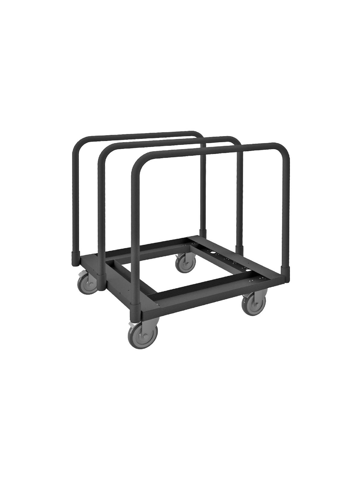 Heavy duty, 14 gauge, steel platform. Easy to access and pick up on-board product. Allows for the storage and transportation of various sizes of panels & products. Durable, gray, textured powder coat finish. FOB Shipping Point.