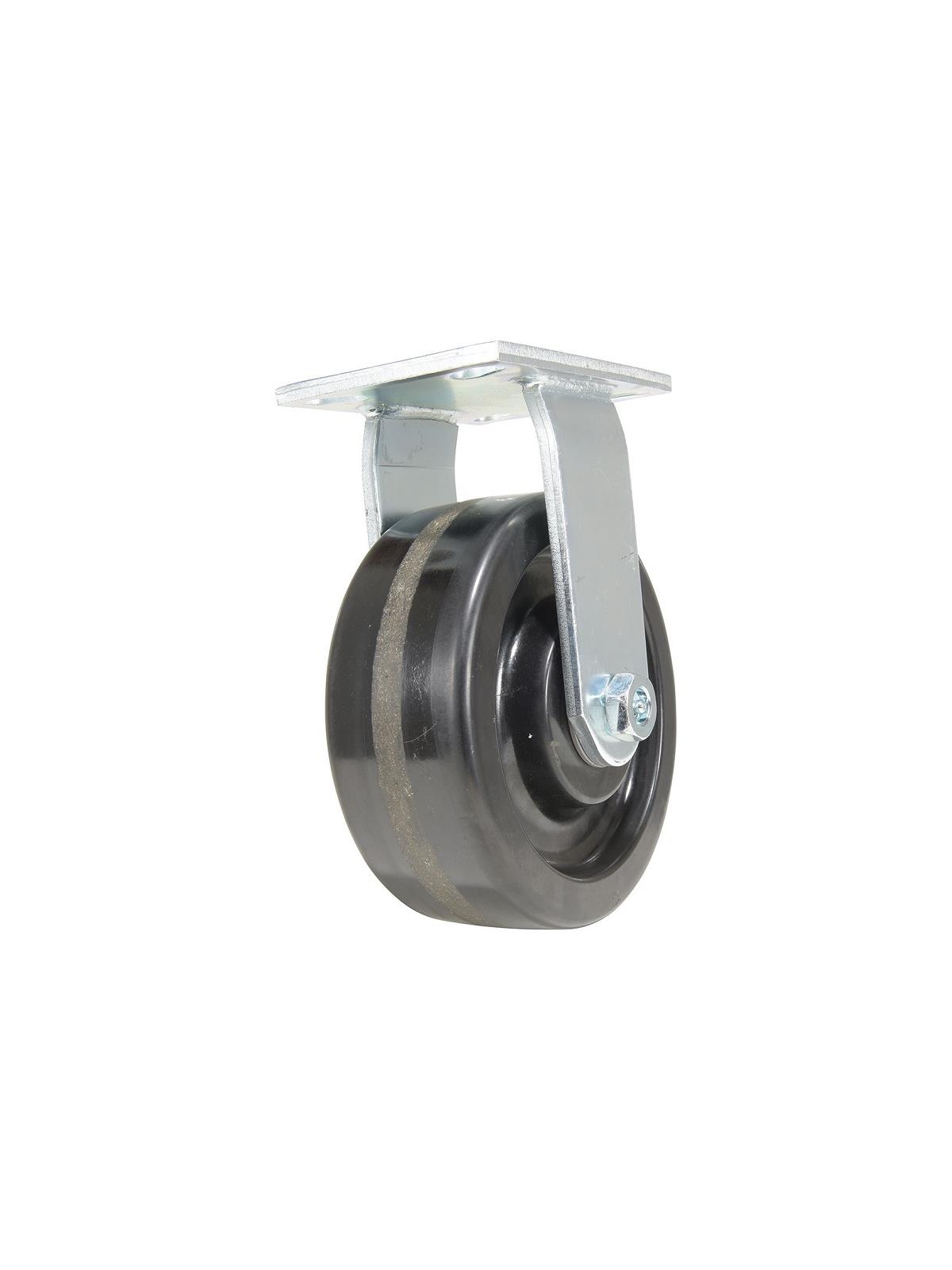 Phenolic wheels have a high resistance to impact damage, while providing protection for floors in commercial and industrial settings. Resistant to water, oil and grease. It is also spark resistant and operates in a wide temperature range. Black tread color. Wheel core is phenolic. 100 Shore A. FOB Shipping Point.