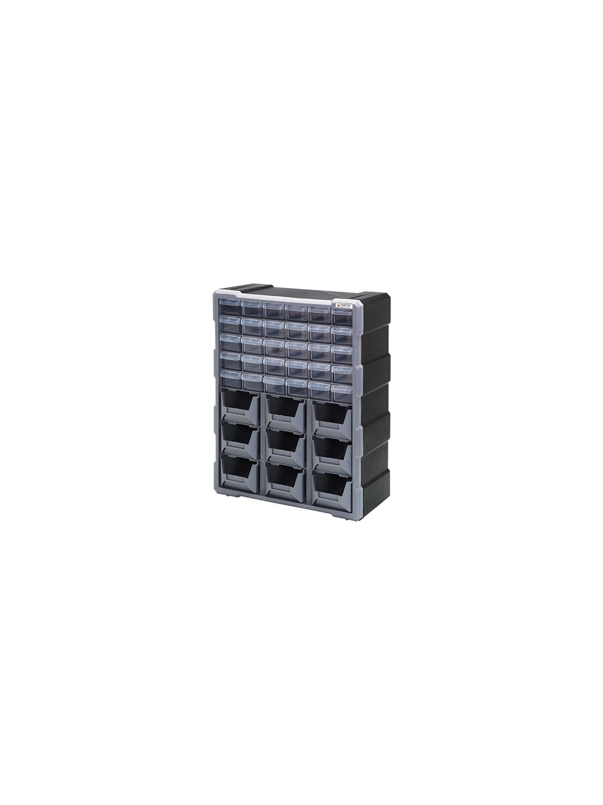 Heavy-duty reinforced construction with durable high impact polypropylene frame and clear polypropylene drawers and bins. See through drawers come with drawer dividers for every drawer. Stable stacking and mounting. Drawer stops prevent spills. Textured drawer pulls. FOB Shipping Point.