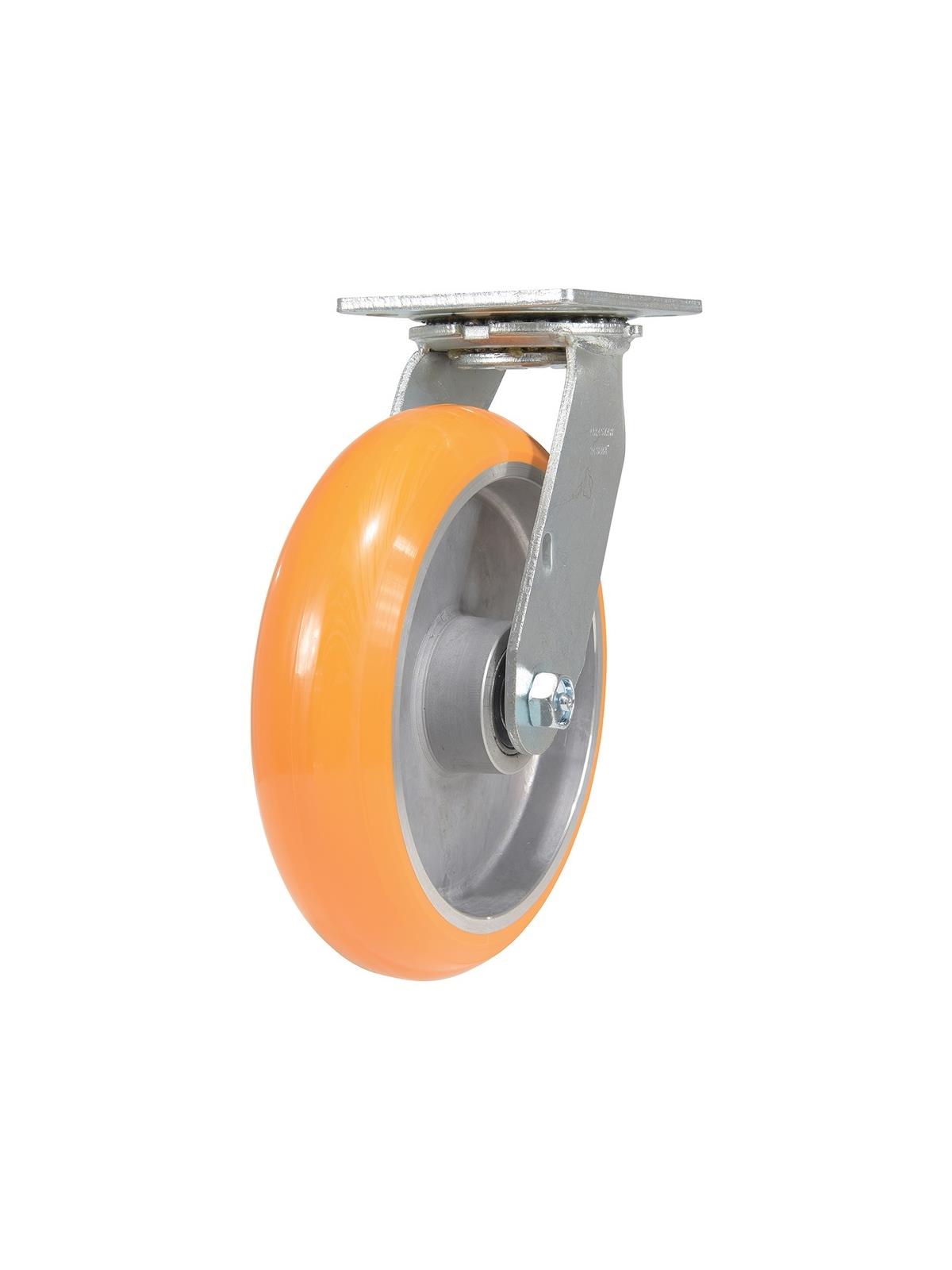 Made of exclusive proprietary donut tread. This caster comes with 6203 precision ball bearings and is bonded to a lightweight water-resistant aluminum core. The high grade elastic polyurethane reduces the force needed for movement and dampens vibrations for a smooth quiet roll. It also deflects debris, which strengthens its longevity and durability. Top plate size 4" x 4-1/2". FOB Shipping Point.