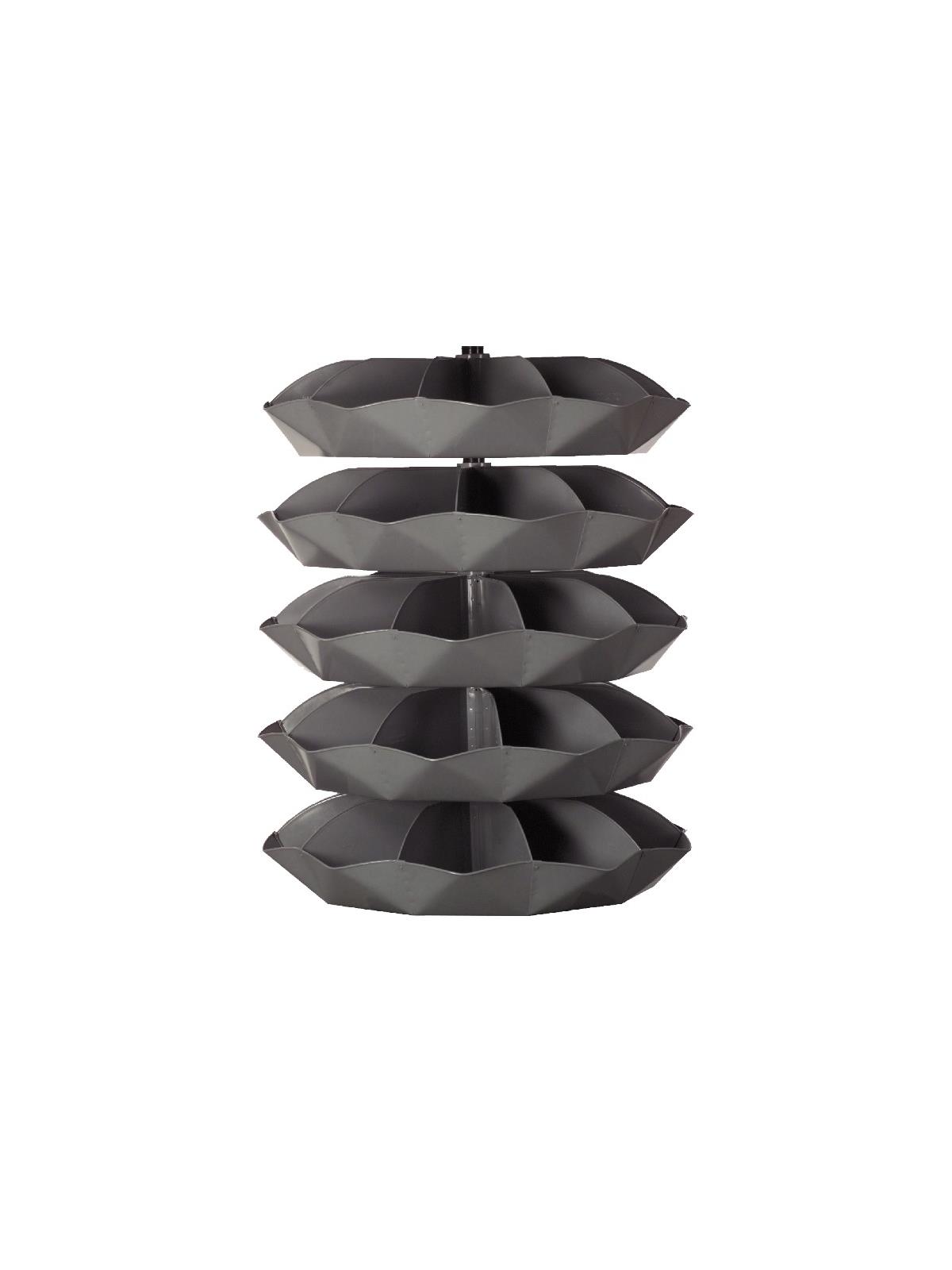 When space is at a premium, Rotabin® is the answer. Revolving shelves turn easily, independently...even when fully loaded. Made of heavy gauge steel for hard daily use. Available in Gray powder coat. FOB Shipping Point.