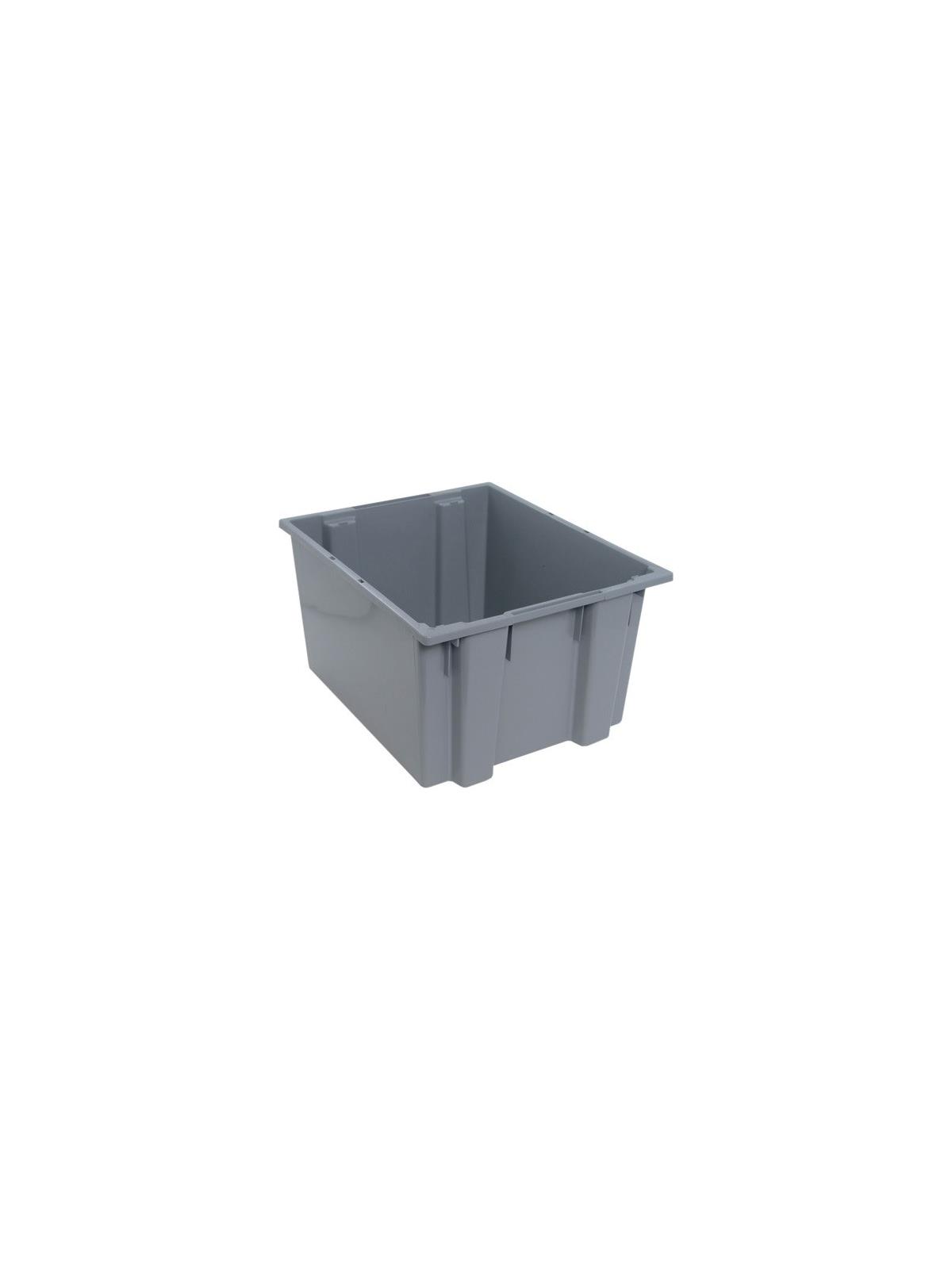 High density polypropylene, injection molded for uniform wall thickness and added strength. Lids snap tightly and securely for a safe fit. Quick 180° turn offers space-saving stacking and nesting. Stacks 6 high. Fits 48" x 40" pallets (6 SNT190, 4 SNT230 per level). Usable in temperatures from -­10° to 250°F. Available in Gray, Blue, Red or Clear. Optional clear, see-thru Stack and Nest Label Holder (HSNH010) and optional Dolly (HDLY-3018) available. FOB Shipping Point.