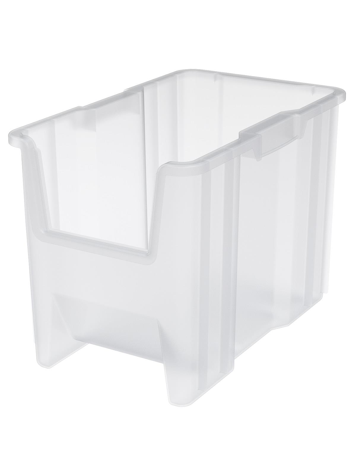 • Bins stack to form tall, stable storage arrangements on floors or standard shelving.