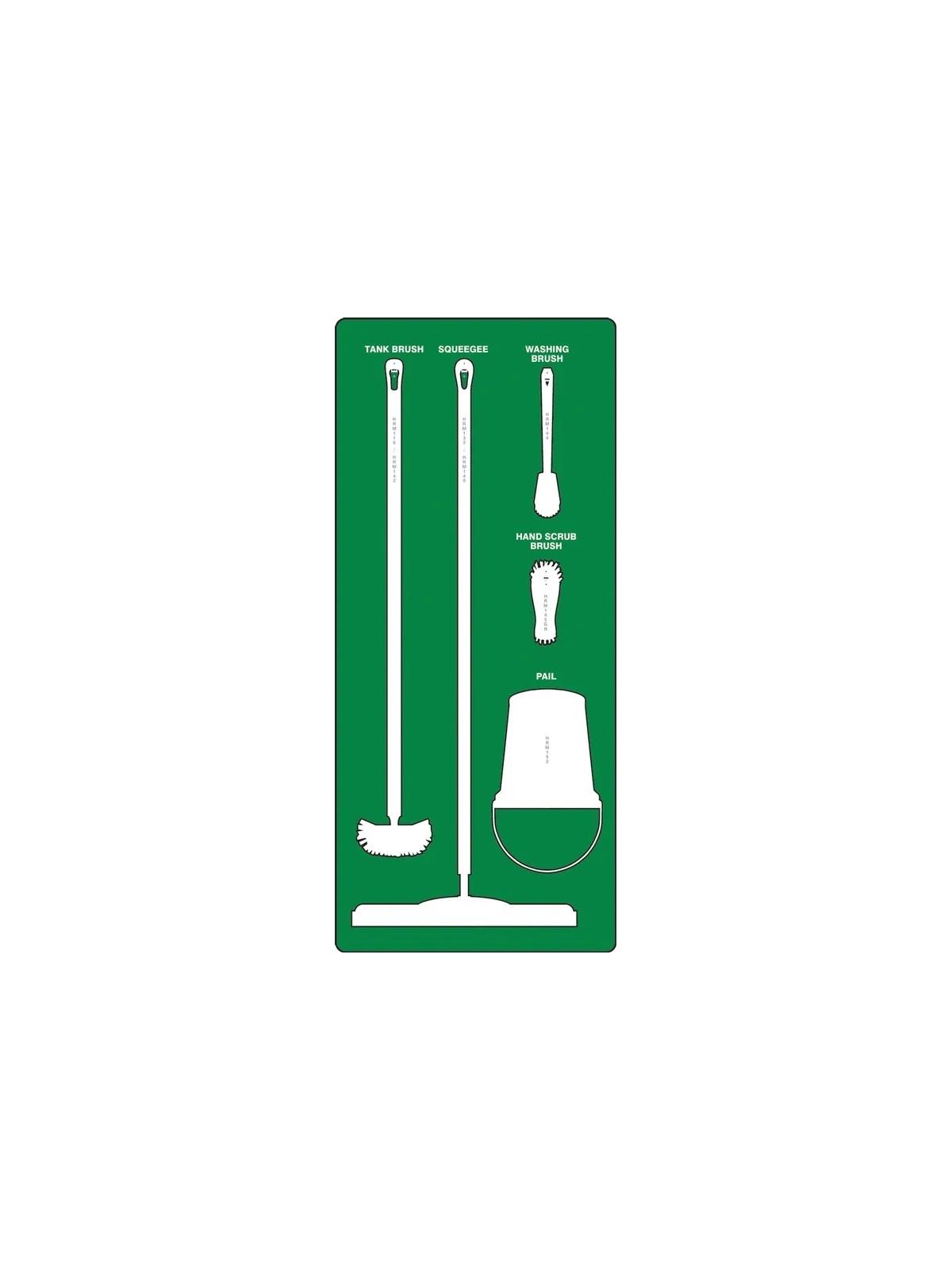 Designed for wet environments, color code your cleaning tools for distinct purposes. Keep general maintenance and cleaning tools organized, neat and always ready for use. Minimize downtime searching for tools by keeping them in one centralized location. Available in a variety of materials to match your environment: Ultra Aluma-Lite™, and Accu-Shield™. 4 color options available with your choice of either black or white tool shadows. Ideal for non-food contact & general maintenance. Promotes tool accessibility at point of use benefits. Maximizes efficiency, organization and accessibility. Minimizes wasted travel time to supply rooms/closets. Provides easy and fast janitorial solutions without added physical stress. Shadow Board Dimensions: 68"H x 30"W. Features 1/2" rounded corners and 3/8" mounting holes. Boards include mounting hardware for tools. Some assembly required: instruction and assembly hardware included. Due to size and/or weight, this product may need to ship LTL. FOB Shipping Point.