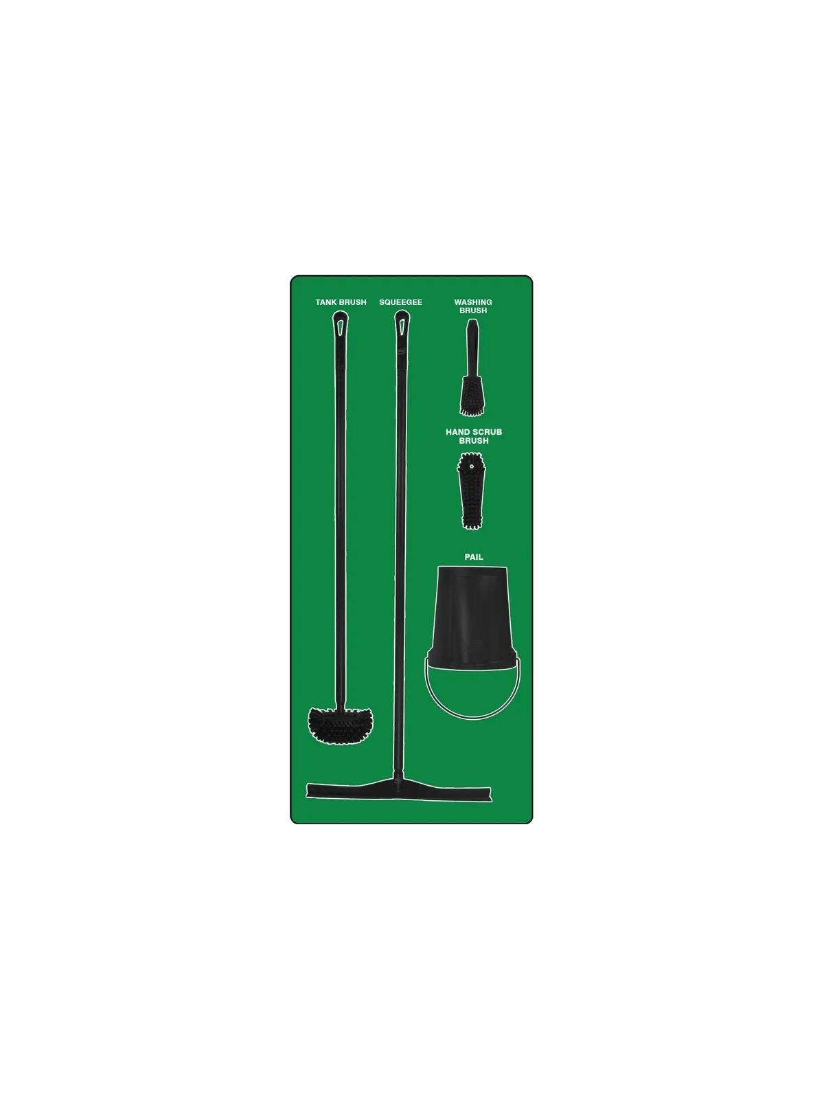 Designed for wet environments, color code your cleaning tools for distinct purposes. Keep general maintenance and cleaning tools organized, neat and always ready for use. Minimize downtime searching for tools by keeping them in one centralized location. Available in a variety of materials to match your environment: Ultra Aluma-Lite™, and Accu-Shield™. 4 color options available with your choice of either black or white tool shadows. Ideal for non-food contact & general maintenance. Promotes tool accessibility at point of use benefits. Maximizes efficiency, organization and accessibility. Minimizes wasted travel time to supply rooms/closets. Provides easy and fast janitorial solutions without added physical stress. Shadow Board Dimensions: 68"H x 30"W. Features 1/2" rounded corners and 3/8" mounting holes. Boards include mounting hardware for tools. Some assembly required: instruction and assembly hardware included. Due to size and/or weight, this product may need to ship LTL. FOB Shipping Point.